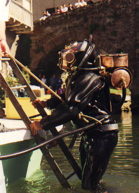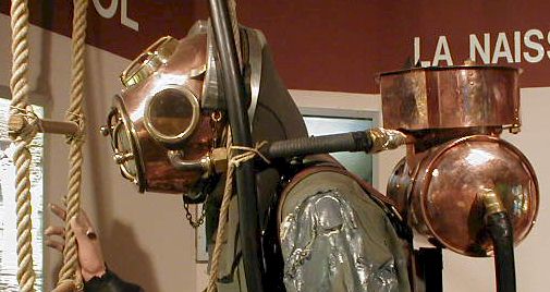 Original Aeropheres can be seen at the Diving Museum in Espalion, France. This one is behind glass. |