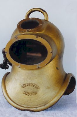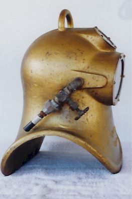 helmet in brass. The diver can control the amout of air coming into